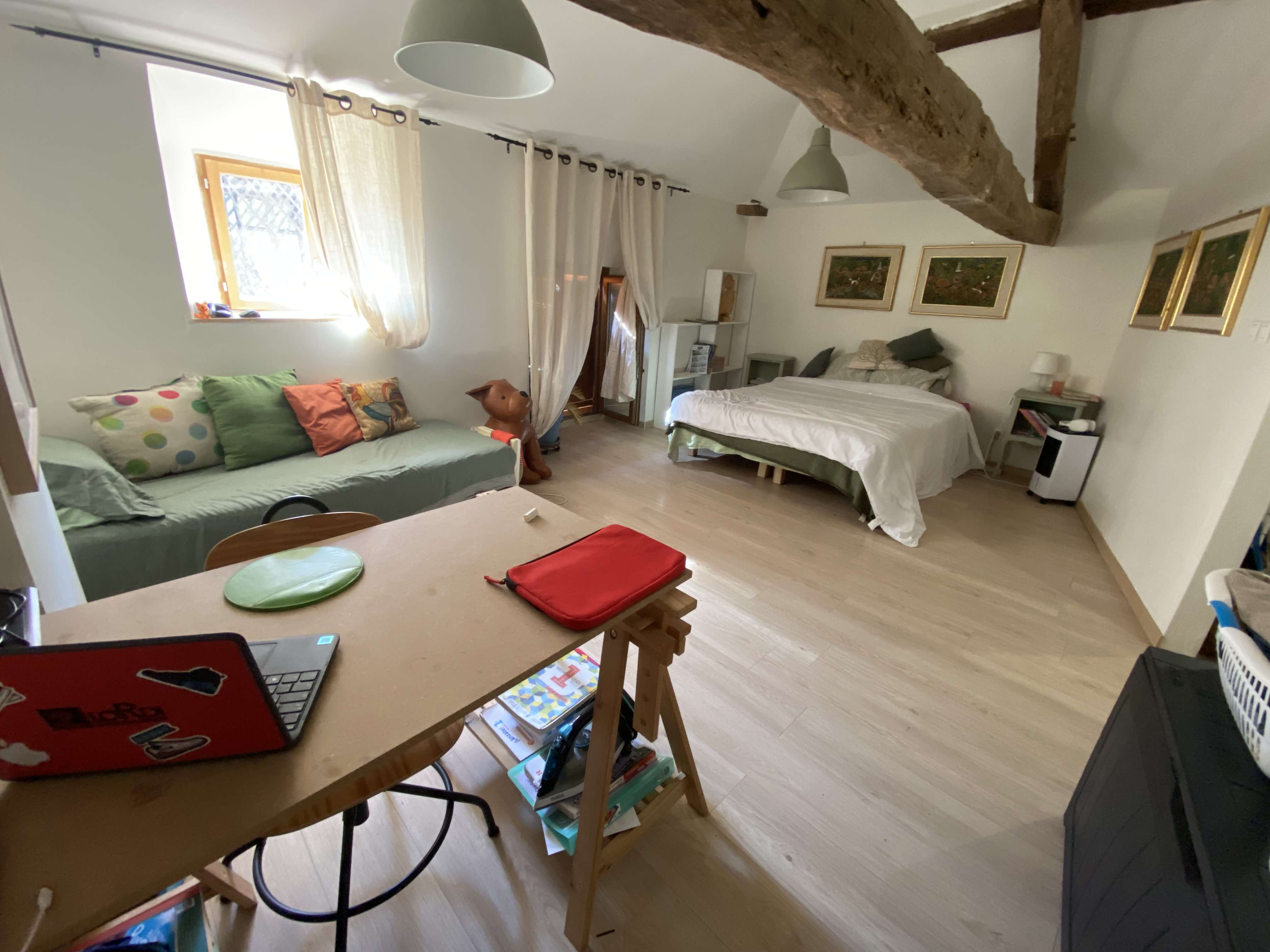 De la même manière, un appartement T2 duplex a été crée sur une aile de la maison, avec sa propre entrée indépendante. Celui-ci est en bon état et peut être loué immédiatement si besoin.