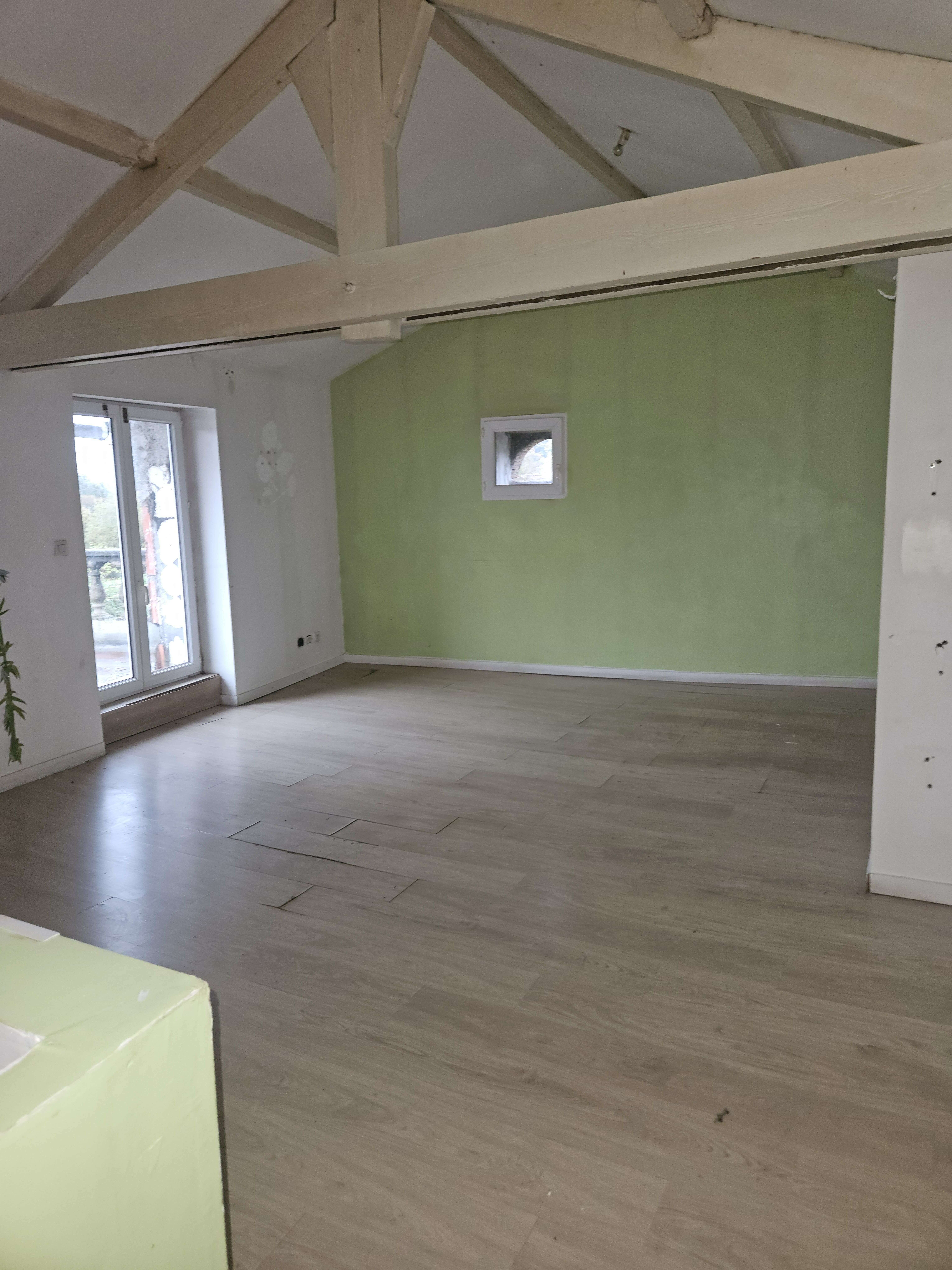 Une entrée accueillante, une cuisine ouverte sur un salon lumineux, deux grandes chambres, une salle d'eau, ainsi qu'un chauffage économique par poêle à granulés.
